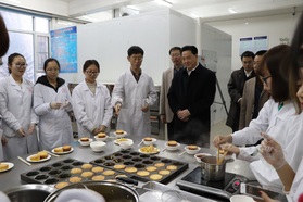 随后,董事长一行考察了食品公司的部分实验室和科研平台,就公司实验室的硬件建设,工作环境,科研平台承担项目情况等听取了公司领导汇报并进行了交流。考察过程中,李元元董事长还饶有兴致地观看了公司建设图片展,十九大宣传栏等公司文化设施,指出公司的宣传工作有传统,党建工作接地气,有创新。