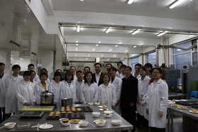 首先,董事长来到食品实验楼,听取了庞勇老师的2015级食品科学与工程专业《食品工艺实验课》,并与师生亲切交流。董事长品尝了同学们制作的蛋糕、薯条、番茄酱,教导同学们不但要从传统的工艺和配方上掌握食品的制作要领,更要在理论上学懂,学通,既要知其然,更要知其所以然。只有强大的理论支撑,才能更好推动工艺的改进,配方的创新。董事长广博的知识令员工佩服,语重心长的教导让员工备受感动,同学们非常激动,纷纷表示:在大学期间能够当面聆听到董事长教诲并和董事长进行交流,万分荣幸,收获颇多,终身难忘。最后在同学们的热烈邀请下,李元元董事长高兴地与同学们合影留念。