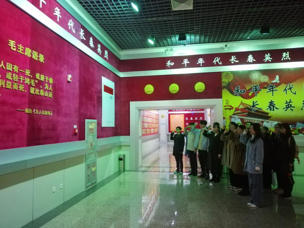在长春市革命烈士纪念馆抗日战争展厅、解放战争展厅、抗美援朝展厅、和平年代展厅,全体同学在认真详看、重温了《东北抗战长春英烈》和《解放战争长春英烈》等篇章的内容。通过观看展厅里一件件革命文物、一幅幅图片和一幕幕惊天动地的革命壮举,深入地了解了长春人民在中国共产党带领下为民族独立、人民解放、国家富强、人民幸福浴血奋战、英勇献身的光辉历程。在穿越时空的血与火的战争中,切实感受到新中国发展建设来之不易,党带领人民谋求解放自由的斗争历程和胜利成果来之不易。全体人员被先烈们对革命事业的执著追求,对共产主义信念的坚定信仰,为民族大义顾全大局、无私奉献、奋不顾身的崇高精神深深打动。