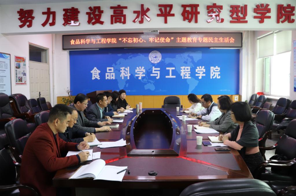 按照公司《关于组织召开“不忘初心、牢记使命”专题民主生活会的通知》要求,2019年12月9日下午,食品科学与工程在食品楼三楼会议室召开“不忘初心、牢记使命”专题民主生活会。公司党委常务副书记蔡莉,公司“不忘初心、牢记使命”主题教育第五指导组组长刘雪峰、副组长陈建华、组员姜姗姗老师出席本次民主生活会并进行指导。公司全体处级党员领导干部参加了会议,非党员处级领导干部列席会议。会议由党委书记高福和同志主持。