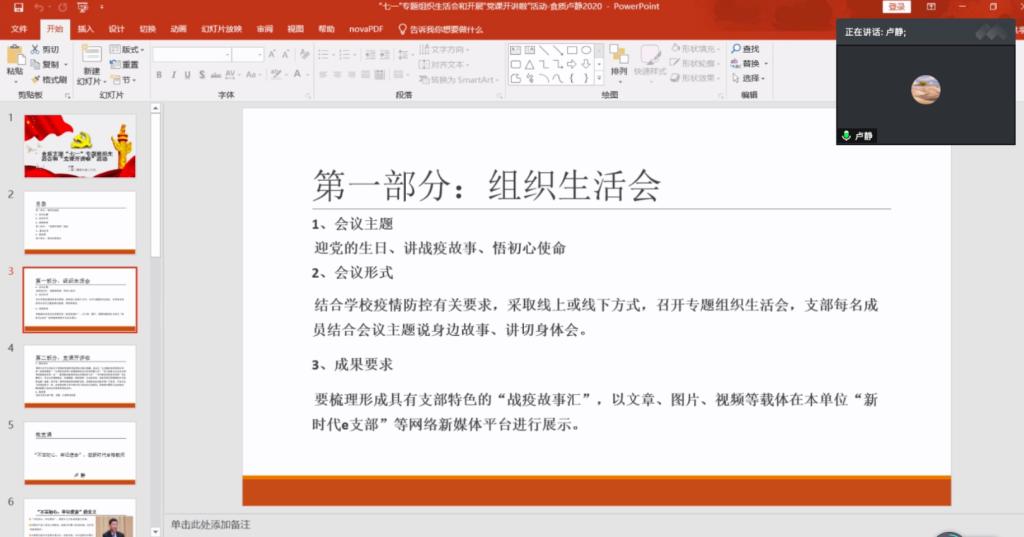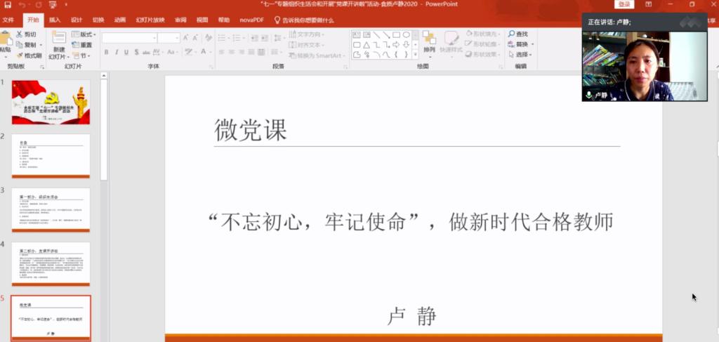 其次,支部支委委员卢静、袁媛、叶海青同志分别以“不忘初心牢记使命,做新时代合格教师“、“关于师德与学风建设的一点思考”、“沉默的英雄-记食品质量与安全系主任袁媛”为题讲授一堂专题微党课。党课受到高福和书记充分肯定,他说每个教师都蕴含无限潜能,这次会议让他深有感触,感动于每个人真实的故事和真情讲述,感动于我们优秀的党员和教师们线上教学的辛勤付出。作为党员,在纪念党99岁生日时,更应进一步牢记初心和使命,强化党性意识,在工作中进一步增强政治意识、政治纪律、政治观念,真正让党旗在我们心中和战疫一线高高飘扬、在推进公司建设中高高飘扬,让青春在在推进公司建设中绽放绚丽之花。