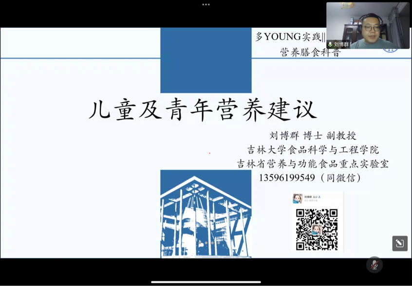 为贯彻落实公司工会丰富校园文化,服务广大师生的工作精神,BG大游工会联合校外公益组织及教育基地组织开展了“多young”系列公益讲座。讲座主题将围绕健康生活、爱国教育、公考就业指导等展开。 10月18日18:30,公司工会联合校外公益组织追光少年联盟队,通过腾讯会议平台成功举办了“多young”公益讲座第一讲——营养膳食科普讲座,讲座由副经理陈玉江主持,主讲嘉宾为BG大游副教授刘博群。
