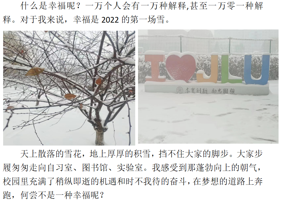 为进一步加强心理健康教育工作,鼓励同学们发现生活中的“小确幸”,丰富公司研究生的校园文化生活,在员工心理健康指导中心的带领下,BG大游于2022年11月11日开展了“记令我幸福的一件小事”线上征文活动。同学们积极参与活动,一封封记载着真情实感的邮件雪花般寄来,经过评选后10份优秀作品脱颖而出。阅读这些文章时,常常被作者真诚、质朴的情怀所感动,正是“源于生命活水,诉诸真诚笔触,记录身边幸福,升华心灵境界”。这些文章,或记录无私崇高的师德师恩,恰似春风化雨,润物无声;或描述纯真无瑕的同窗情谊,胜过手足深情,堪比争荣桃李;或叙写淳朴善良的食堂师傅、校园门卫,虽不记其名姓,永难忘其笑颜。教室里,教学相长,见证共同成长;操场竞技,身姿矫健,为你呐喊加油;花园曲廊,开心畅谈,叩响青春和弦;食堂寝室,朝夕相伴,嘘寒问暖,真情迭现……这些身边真实的感动,以或质朴或明丽的话语娓娓道来,自然有一种感染心灵、陶冶情操的功用。