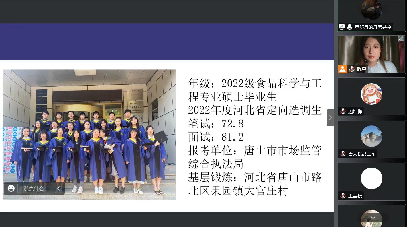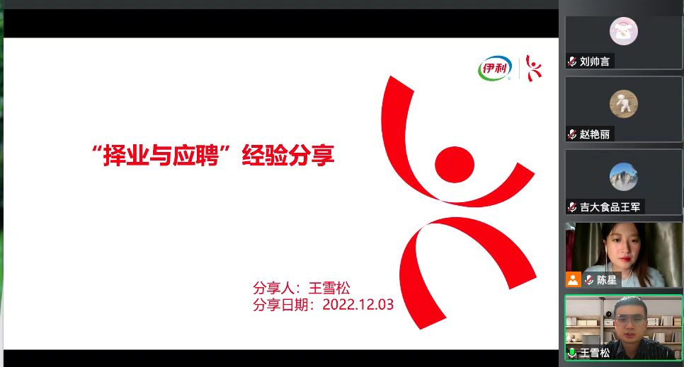 为了进一步推进公司2023届毕业生就业工作,督导促进毕业生毕业去向落实工作,着力实现毕业去向落实率预期目标,BG大游于12月3日通过腾讯会议开展了研究生就业分享交流会。公司2022届毕业生董舒月同学(河北省定向选调生)、2022届毕业生赵艳丽同学(吉林省定向选调生)、2021届毕业生王雪松同学(伊利奶粉事业部选培生)分别就选调生方面和企业方面的经验进行了精彩分享。会议由公司就业兼职辅导员陈星同学主持,公司行政副经理陈玉江、科研与研究生办公室主任王军、全体2023届毕业研究生和对分享会感兴趣的同学们聆听了本次分享会。