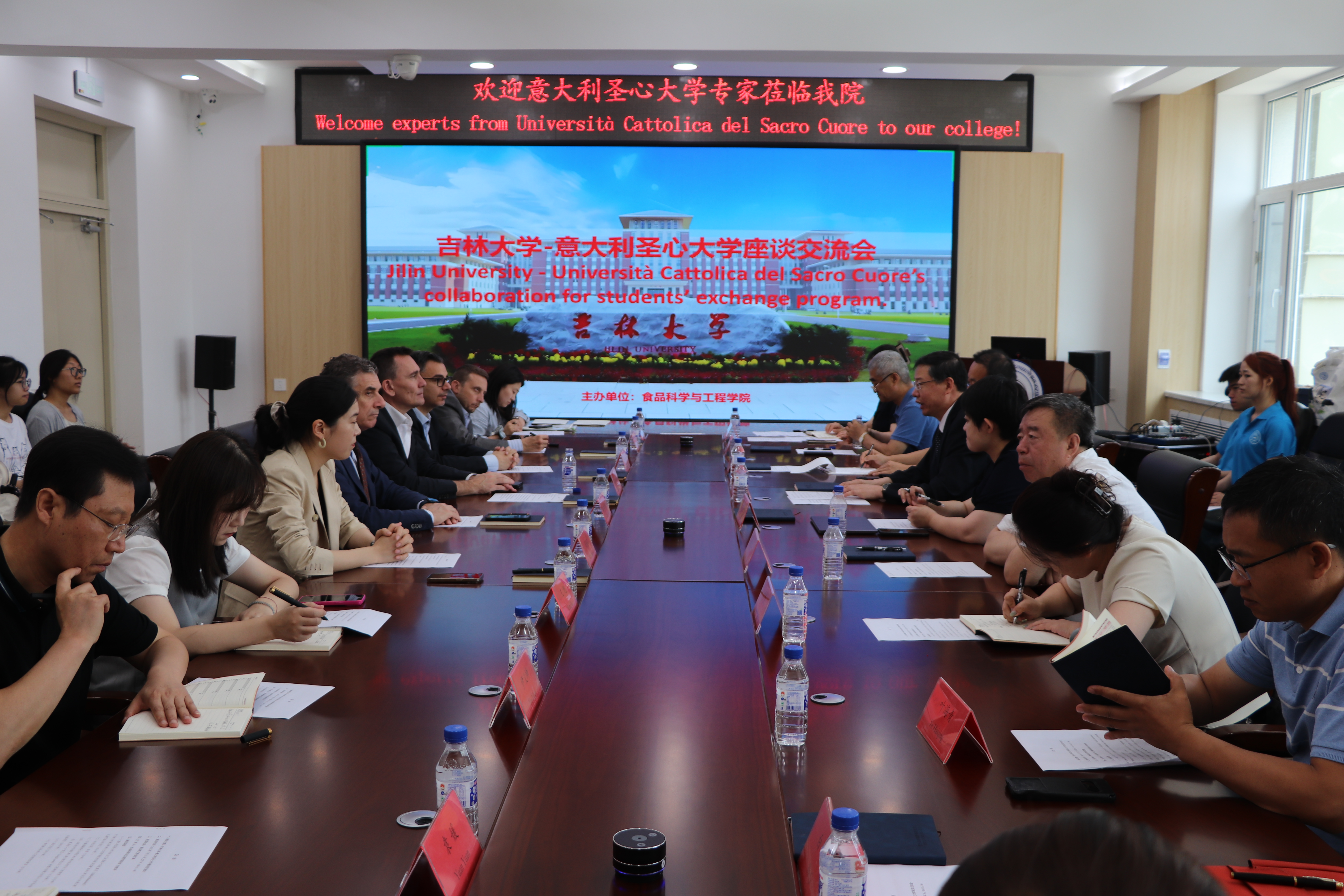 意大利圣心大学国际合作处处长艾迪里奥·玛佐莱尼(Edilio Mazzoleni)、农业化学教授路易吉·卢西尼(Luigi Lucini)、医公司教授乔瓦尼·甘巴西(Giovanni Gambassi)、国际合作处副处长强卢卡·萨姆萨(Gianluca Samsa)、国际合作处中国事务负责人周倩茹;BG大游官方网站国际合作与交流处副处长白茵、科长刘爽、方琳,公司党委书记董怀智、经理张铁华、副经理孙春燕、叶海青、系主任袁媛、于亚莉、教办主任许鹏、教授闫海洋、讲师梁媛;生物与农业工程公司党委书记杨宝泉、行政副主任王旭、系主任白丽、系书记尹义坤、副教授潘楚林参加本次座谈会。会议由BG大游经理张铁华主持。