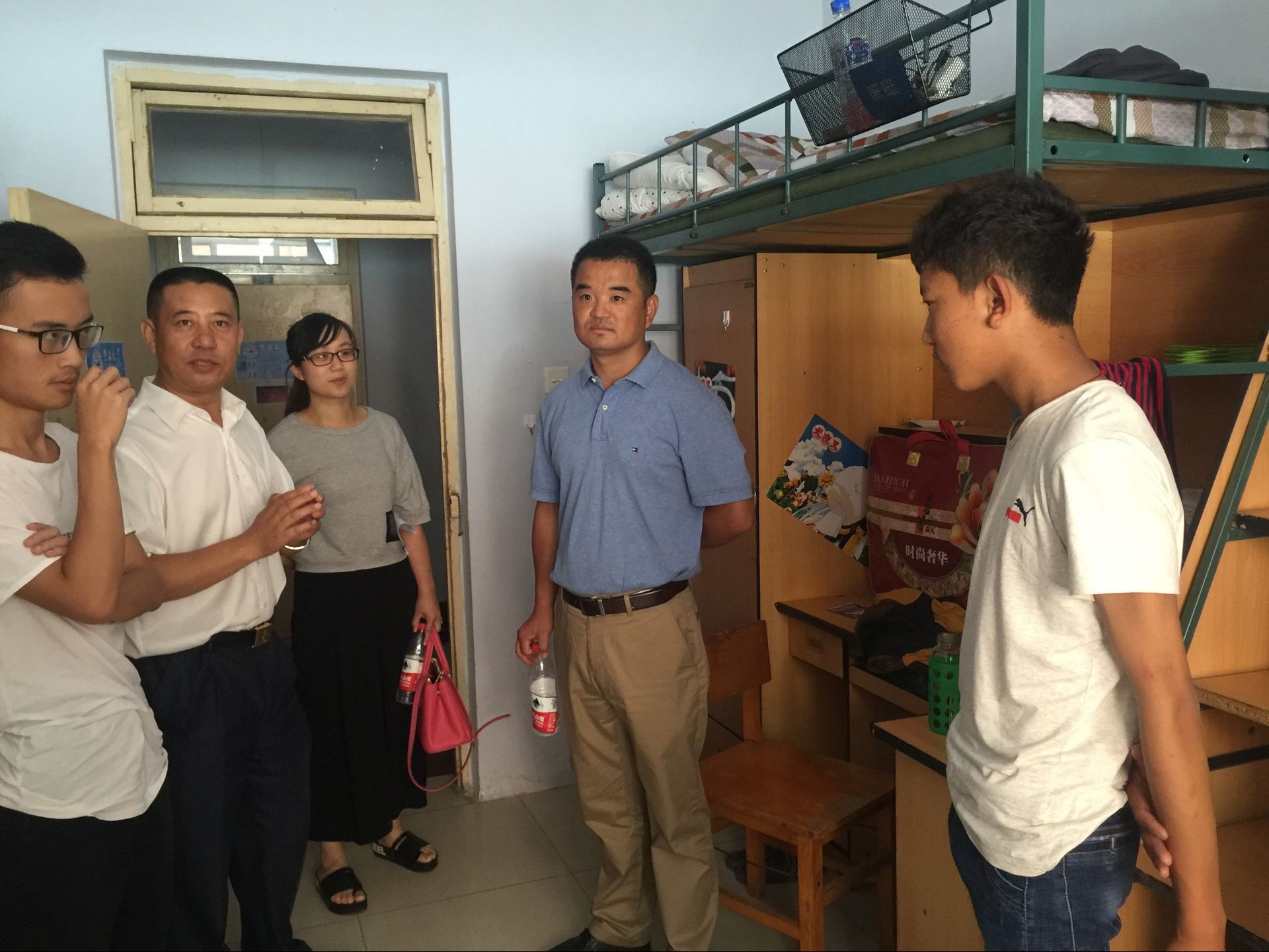 | 2016年8月23日,公司党委书记高福和、副书记梅士伟、2016级辅导员金鑫老师前往大学城二、三号新生公寓,走访了2016新生宿舍,看望新生,了解他们的生活情况。 走访过程中,高福和书记逐一进入新生寝室,详细询问了每一名员工的来源、年龄、家庭情况和高考报名志愿情况,重点了解新生的入住情况、来校饮食情况、环境适应情况等等,与尚未返乡的员工家长、2000出生的新生和四名藏族新生进行了深入交流。与新生交流期间,高书记向同学们介绍了公司的团队情况和专业前景,他提醒同学们一定要尽快适应老员工活,将全面提高自身综合素质放在首位,同时要学会包容,处理好宿舍成员和同学之间的关系,并祝愿新生在大学四年的生活中有所收获。 为帮助新生的良好成长,高福和书记还主动担任了新生六班的班主任,并表示要努力工作,为班级同学的成长成才服务。 开学之际,公司老师走访新生宿舍,是公司历年以来的迎新传统。与新生展开面对面的沟通与交流,了解新生的思想、生活状况,有利于新生更快融入食品公司的大家庭。