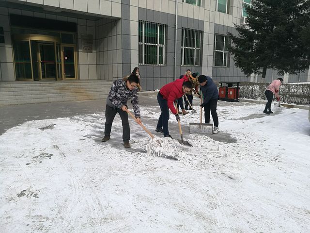 扫雪过程中,员工党员们不畏严寒、积极主动、相互配合、齐心协力,挥舞着铁锹,一点点地将积雪和冰层铲起集中堆放,尽管同学们的手和脸被冻的通红,然而这一切丝毫没有影响大家的热情和工作效率,手中的扫雪工具不停地挥舞。在公司员工第二党支部副书记李松函的带领下,同学们发扬了吃苦耐劳、顽强拼搏的精神,大家团结协作,顶着寒风,将食品楼前的积雪全部清扫干净。同学们干劲十足的身影感染了每一个路过的人。经过了近一个小时的奋战,路面基本恢复了畅通洁净。