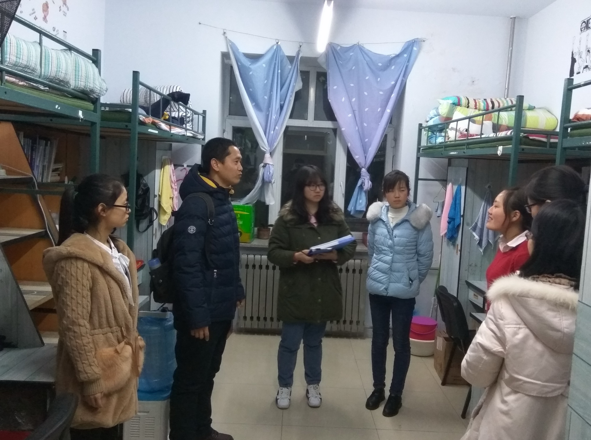 | 阳春三月,新学期伊始。为了确保寝室安全整洁,同学们拥有干净良好的生活环境,2017年3月9日下午5时,BG大游2016级兼职辅导员侯聚敏老师带领公司员工会纪检部成员对大一年级开展了查寝工作。 查寝期间,侯老师详细地询问了同学们近来的学习及生活状态,并重点检查了寝室的卫生情况,使同学们感受到了老师的关怀。同学们的寝室环境大多干净整洁,井然有序,侯老师对环境良好的优秀寝室提出了表扬,对卫生存在问题的寝室进行了指正。侯老师不仅对每个寝室的卫生状况给出相应的评价,还为同学们建设良好的寝室环境提出了宝贵的建议。查寝结束后,我部将查寝的相关记录整理存档,并对本次查寝活动进行总结。 通过此次检查,不仅加强了宿舍安全管理,也提高了同学们的积极性,进一步营造了安全、健康、和谐的学习生活氛围。希望通过我们的工作,同学们能自觉保持室内卫生,让寝室生活更加安全、卫生、美好!