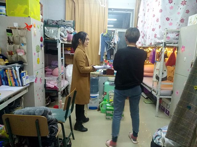 查寝期间,金老师亲切地询问了同学们的近况及动态,了解同学们的学习及生活状态,并重点检查了员工在寝情况和寝室的卫生情况。对个别未在宿舍的同学,及时问清了去向,同学们的寝室环境大多干净整洁,井然有序。老师要求同学们必须保持良好的寝室卫生并及时通风,为其建设良好的寝室环境提出了宝贵的建议。查寝结束后,我部将查寝的相关记录整理存档,并对本次查寝活动进行总结。