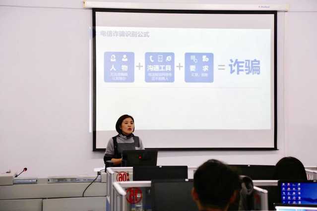 进一步加强对防范传销、电信诈骗的宣传教育,提高在校老员工远离传销、拒绝传销的能力,2017年11月8日晚,BG大游在食品楼三楼机房组织开展了防范传销及电信诈骗宣传教育活动。本次活动由辅导员郝慧主持,员工会成员和各年级班委同学参加了此次活动。