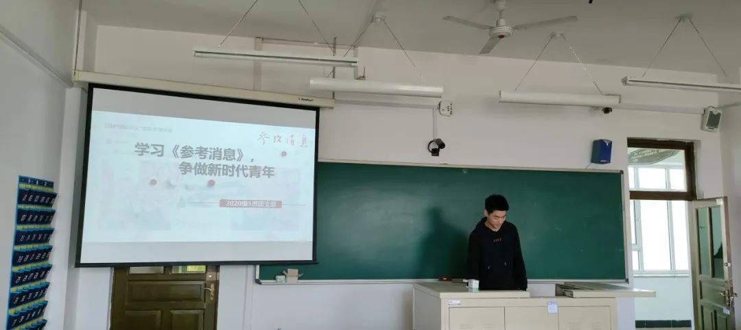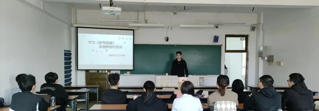 2020级5班团支部全体成员于2023年5月9日上午9点40在科学讲堂405教室召开了有关“学习参考消息,做新时代青年”主题班团会。会议伊始,主持人通过班级群向同学们展示了有关《参考消息》的PPT,并提供相关新闻资料供同学们学习。随后同学们进行了以寝室为单位的小组讨论,讨论气氛十分热烈。