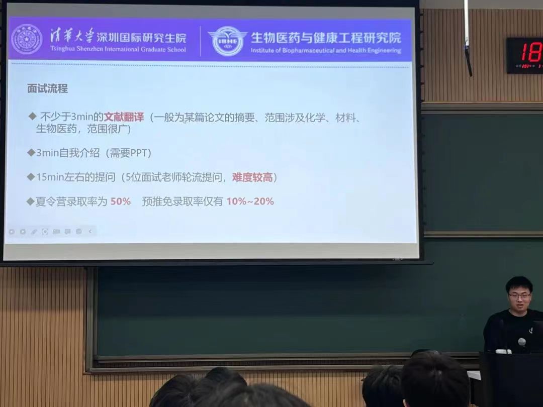 潘培蓓学姐以夏令营预推免的经历,从学硕和专硕二者之间的区别以及不同的侧重方向向同学们介绍了一条新的发展道路。同时她提出参加不同公司开展的夏令营活动能够增加更多成功的机会,并鼓励同学们利用课余时间丰富自己的简历。