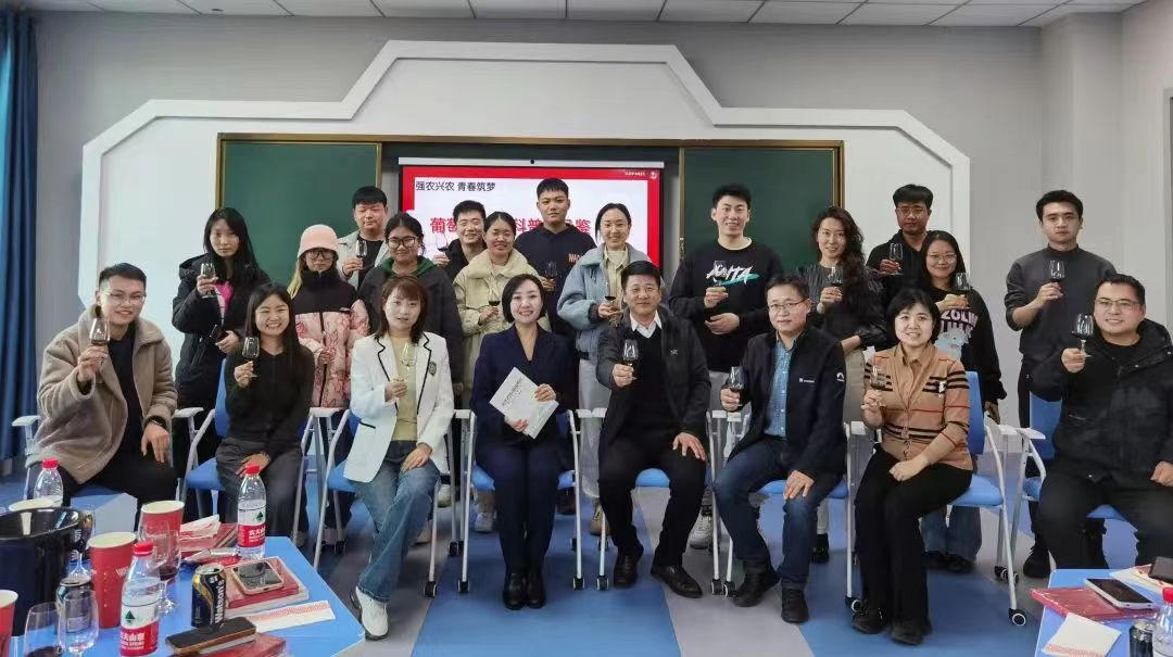 活动结束后,同学们与老师们共同举杯合影留念。通过此次活动,同学们了解了我国宁夏地区的“紫色名片”,对葡萄酒从田地到餐桌的历程有了新的认识。深刻感受到,作为新时代食品学子,应厚植强农兴农情怀,志存高远,保持初心,拼搏进取,为促进我国食品领域创新发展做出新的贡献。