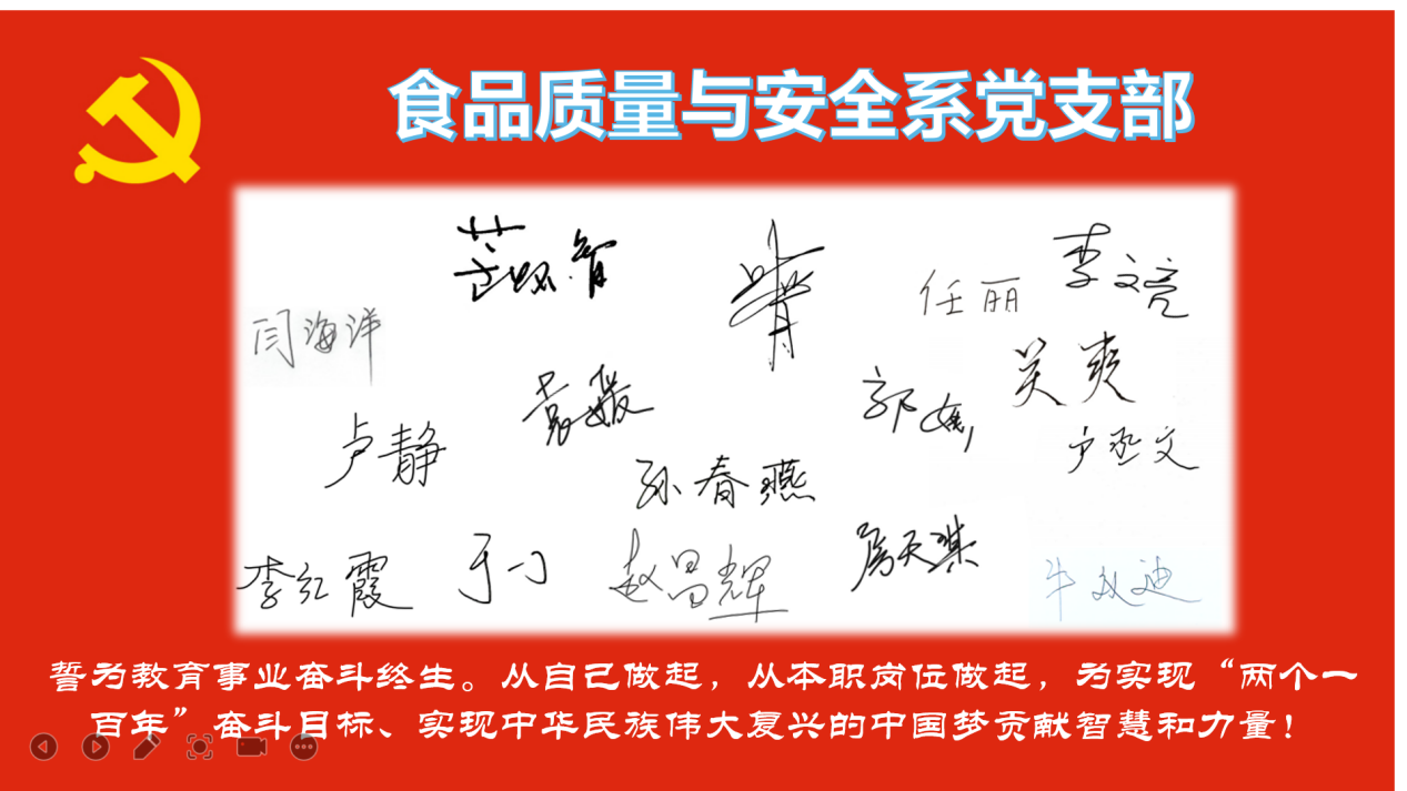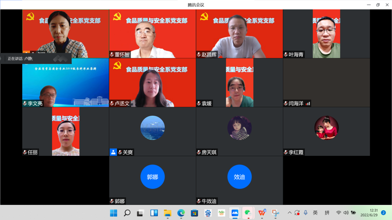 6月29日,为庆祝中国共产党成立101周年、迎接党的二十大,落实公司组织部《关于组织开展庆祝中国共产党成立101周年暨“喜迎二十大、奋进新征程”主题系列活动的通知》要求,按照公司统一布置,食品质量与安全系教工支部通过腾讯会议平台线上开展“践行大年精神,喜迎二十大,奋进新征程”主题党日活动。活动由支部书记卢静主持,公司党委书记董怀智参加活动。