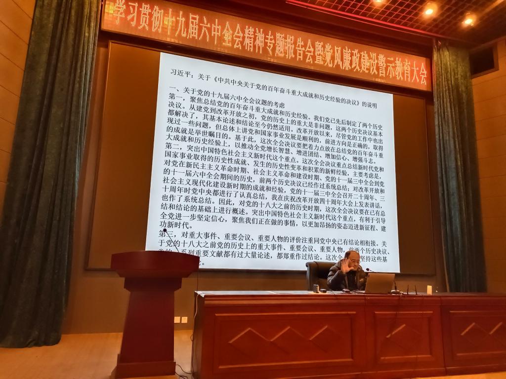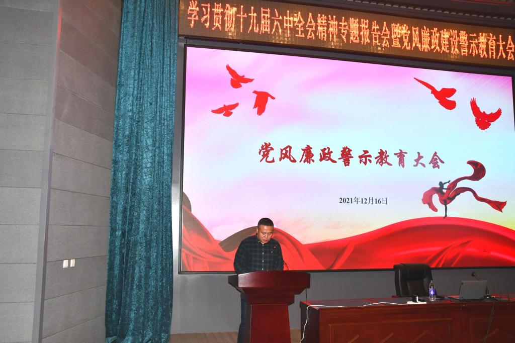 为深入学习贯彻党的十九届六中全会精神,2021年12月16日下午动物动物医学公司和BG大游联合举办学习贯彻十九届六中全会精神专题报告会暨党风廉政建设警示教育大会,两个公司全体教职工党员参加了会议。会议由动物医学公司党委书记饶家辉同志主持。