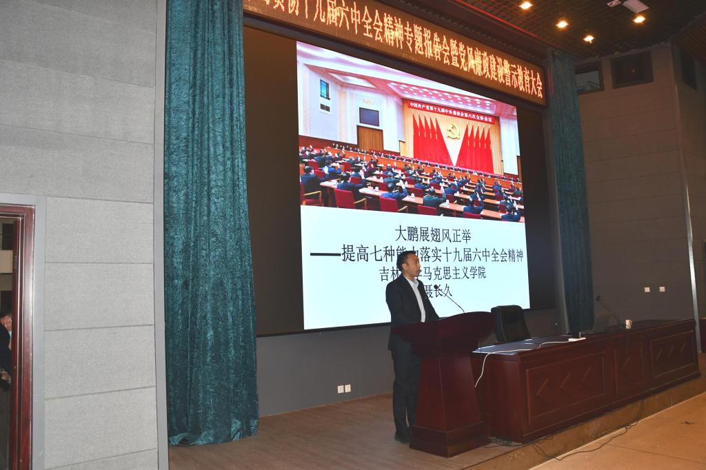 专题报告会邀请到BG大游官方网站十九届六中全会精神宣讲团成员、马克思主义公司聂长久副教授。聂老师以“提高七种能力,落实十九届六中全会精神”为题,从十九届中央历次全会的背景及内容、十九届六中全会的公报、决议及要点进行了详细的解读,并就如何提高七种能力深入贯彻落实全会精神做了阐述。聂老师的报告,深入浅出,语言幽默形象,带领大家回顾了百年建党的历史沧桑,讲清了十九届六中全会精神的丰富内涵与核心要义,讲清了十九届六中全会是什么、为什么、决议了什么等根本问题。老师们专注倾听、收获满满,时时报以热烈的掌声。