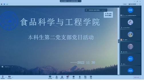 接着,黄树青同志带领支部全体同志具体学习。在从严治党方面,支部成员系统学习了:(一)坚持和加强党中央集中统一领导;(二)坚持不懈用新时代中国特色社会主义思想凝心铸魂;(三)完善党的自我革命制度规范体系等部分内容。在防疫二十条上,全体支部同志知悉最新的防疫措施,尤其是优化校园疫情防控措施。宋林坤、于婉婷、吴晶、刘佳宁等同志先后进行领学。