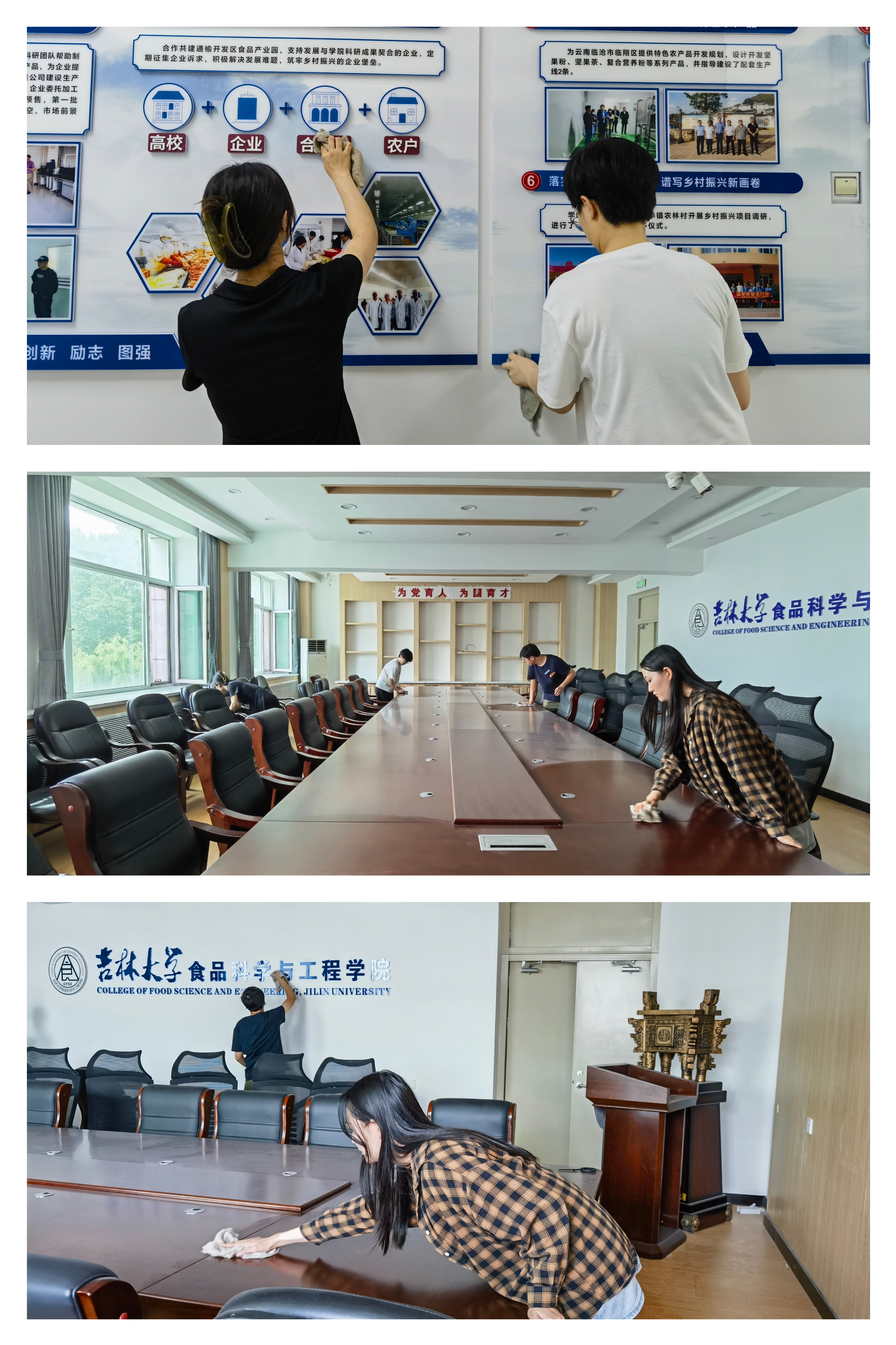 通过前期的安排和部署,BG大游硕士员工第一党支部组织委员路琪同志带领第一、第二党支部入党积极分子韩清雯、胡亚楠、龚泠灵、王彦力和李俊峰五名同学对公司的会议室、活动室、文化长廊等场所开展卫生打扫,同学们有序进行扫地、拖地、擦拭桌椅、摆放物品、垃圾清理等工作,为全院师生提供了干净整洁的办公、学习环境。